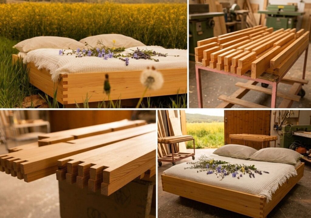 Das Ergebnis ist ein Bett, das sich leicht und werkzeuglos auf- und abbauen lässt – ideal für Umzüge oder wenn sich das Leben verändert – und gleichzeitig für Jahrzehnte ruhigen, metallfreien Schlaf verspricht.
