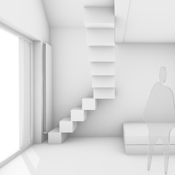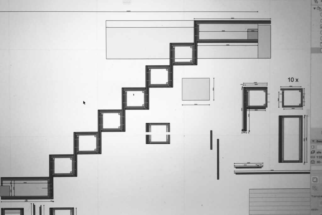 Skulpturale Form: Die Treppe wirkt wie eine frei im Raum stehende Skulptur – kantig, expressiv und formschön zugleich.
